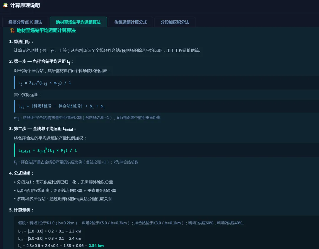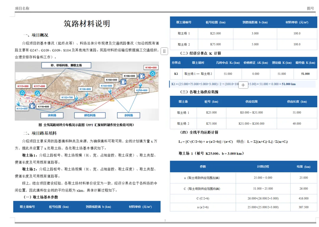 为了便于项目设计图纸精细化和标准化,今天分享公路工程筑路材料运距计算程序及说明模板。筑路材料的运距计算其实本身原理很简单,很多人说就是个加权平均,但也要区分开来。最早我用excel编公式,后面用matlab,现在利用生成式AI自己做了相应的程序,但是万变不离其宗。