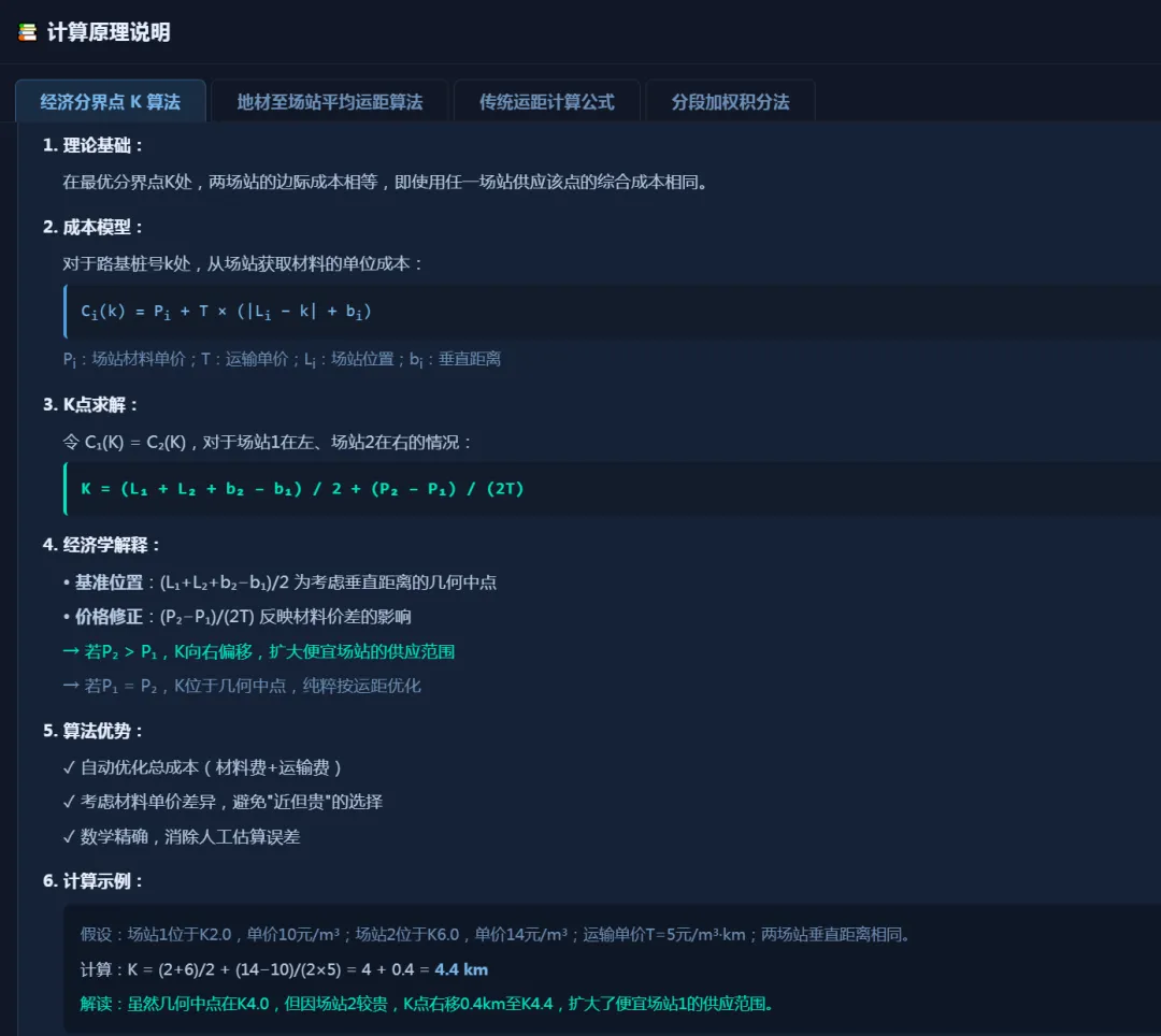 同时对于不同料场之间会有不同出厂价,那么需要计算经济分界点,这个程序也直接实现。