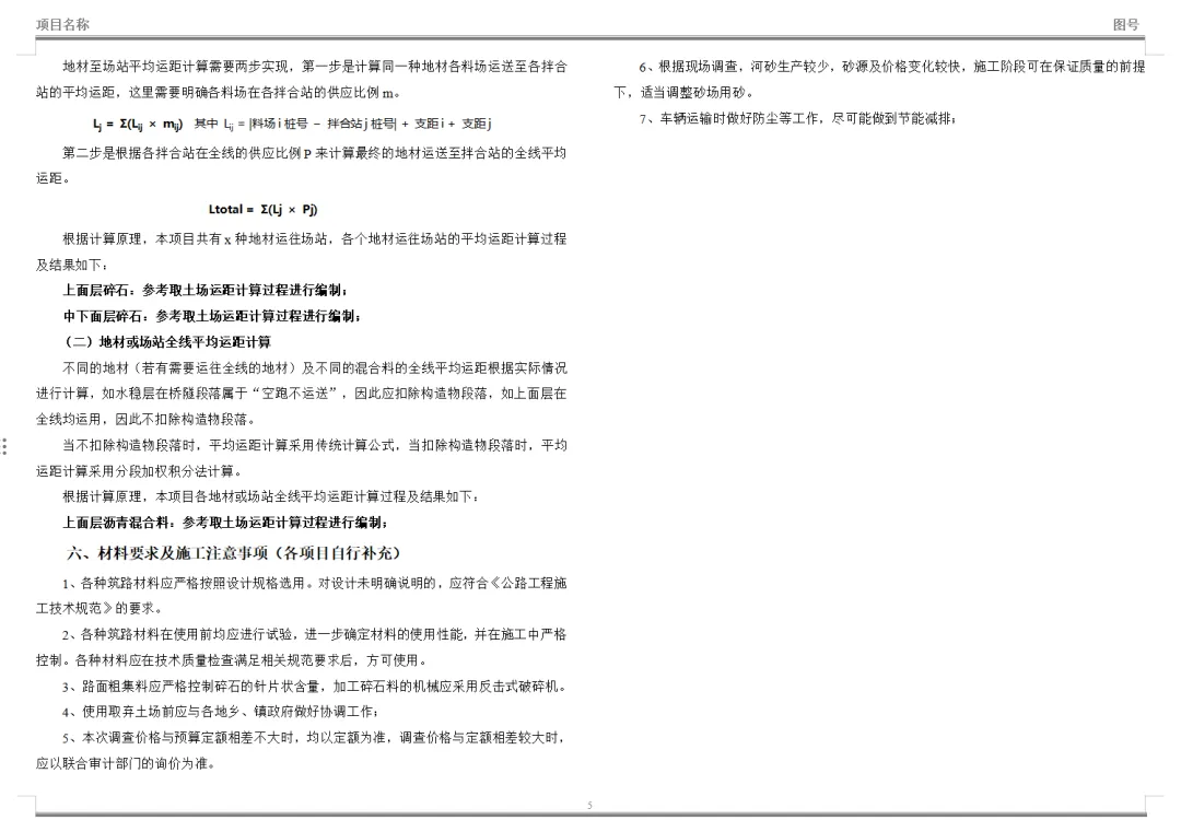 然后是不同的地材(若有需要运往全线的地材)及不同的混合料的全线平均运距根据实际情况进行计算,如水稳层在桥隧段落属于“空跑不运送”,因此应扣除构造物段落,如上面层在全线均运用,因此不扣除构造物段落。当不扣除构造物段落时,平均运距计算采用传统计算公式,当扣除构造物段落时,平均运距计算采用分段加权积分法计算。