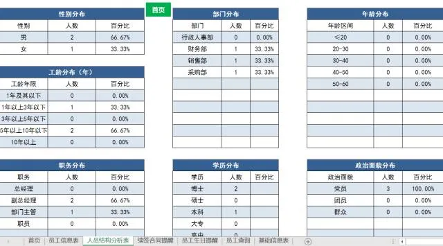 7 人事档案员工信息结构分析表