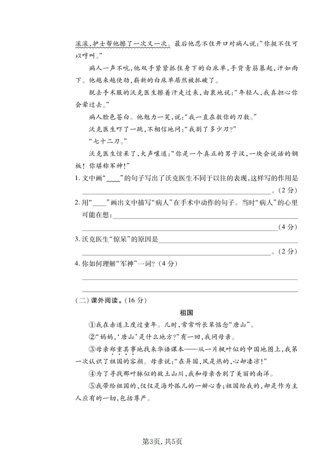 五年级下册人教版语文第四单元测试卷含答案可打印