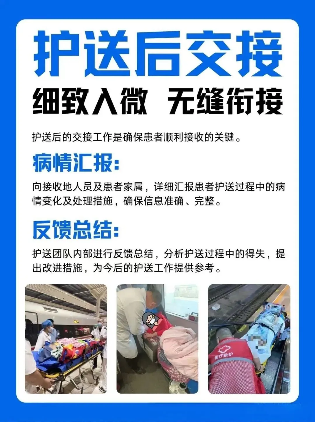 5. 抵达交接:安全送达目的地后,协助家属完成患者交接,全程服务结束。