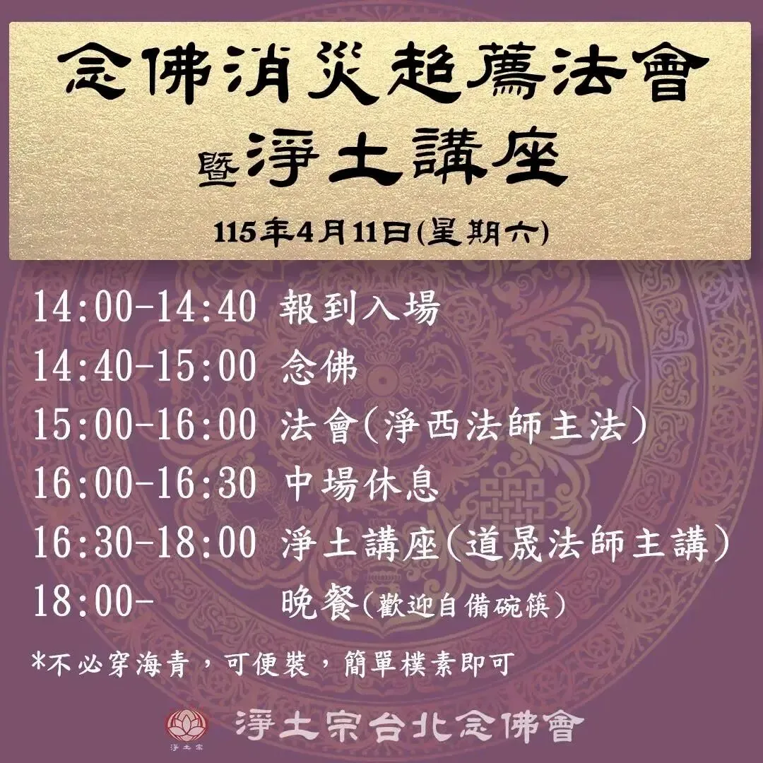 好消息!️睽违二年后,道晟法师将于2026年4月11日再度到台北念佛会讲开示。