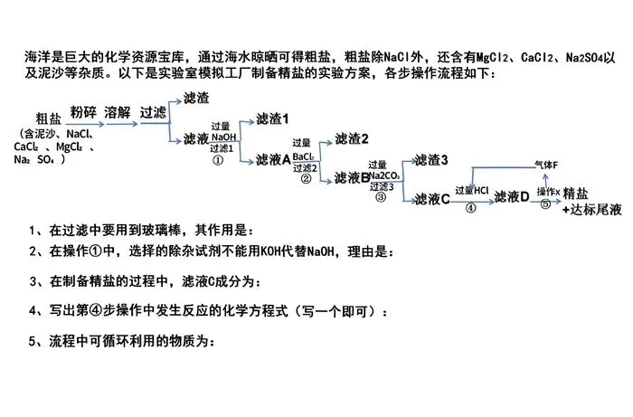 【中考复习】粗盐提纯的工业流程讲解(可下载打印) 通过网盘分享的文件:粗盐提纯的工业流程讲解.pdf 链接: https://pan.baidu.com/s/1KMcn5wIce23b3qk6i7pwcw?pwd=cex6 提取码: cex6