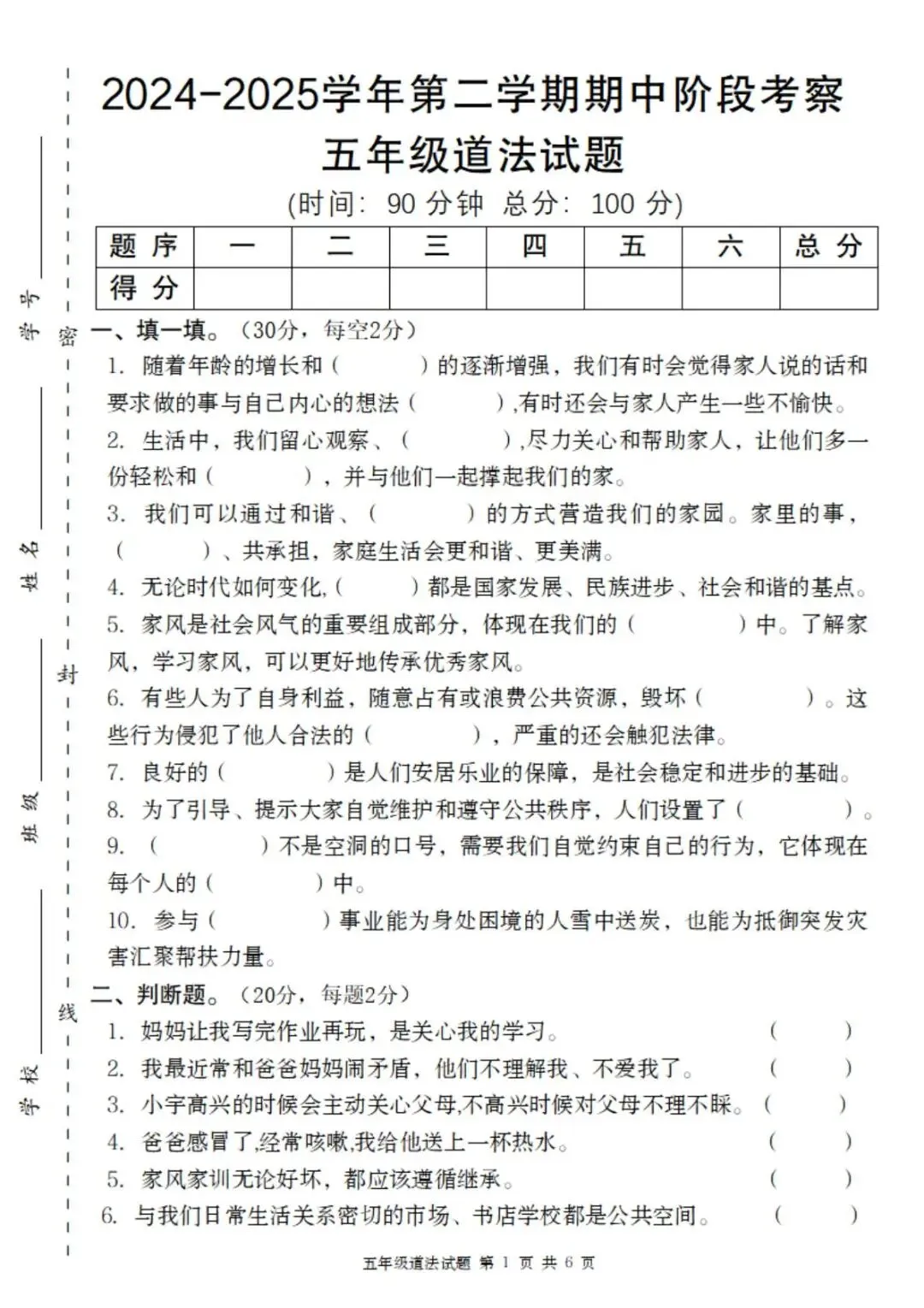 五年级家长们注意!孩子道德与法治期中考试没把握?别担心,我们为您准备了五年级下册道德与法治期中检测卷。