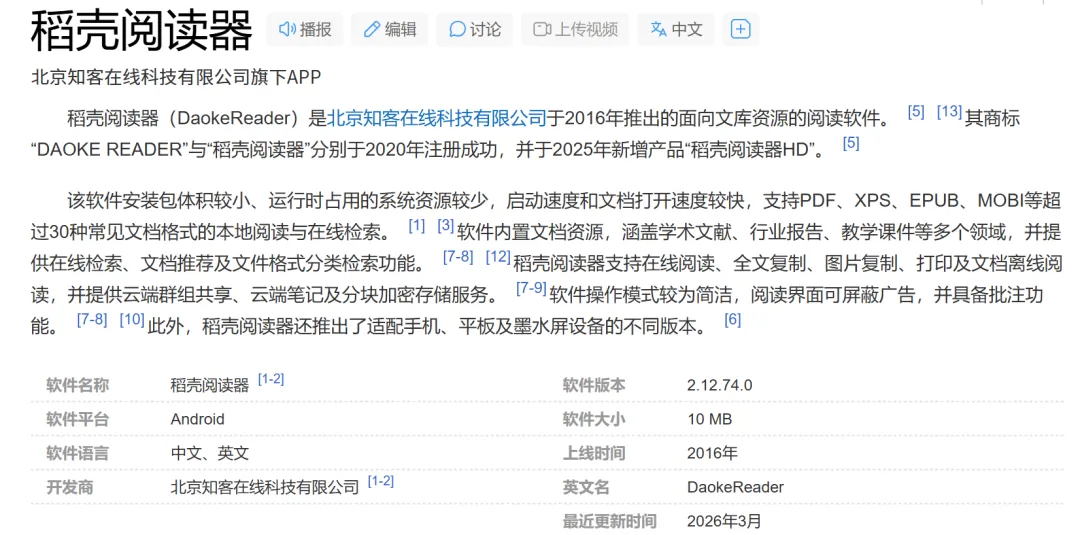 不过,当我继续搜索稻壳的相关信息,居然发现其百度百科条目中赫然载明:最近更新时间2026年3月;软件版本2.12.74.0 。