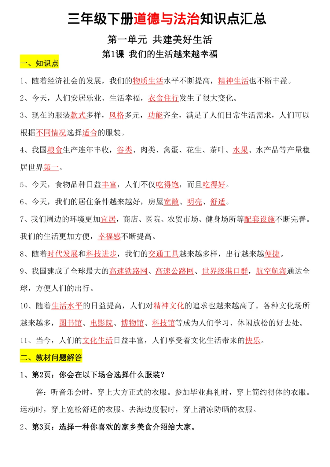 三年级下册道法知识点梳理电子版PDF,23页,免费下载
