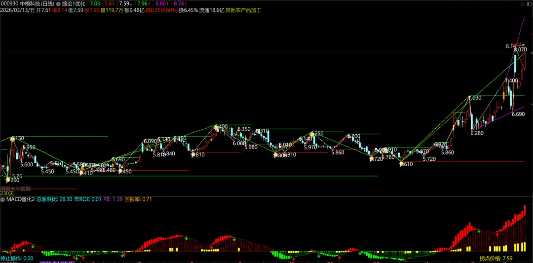 STICKLINE((YIX103>8)OR(YIX104>8)OR((YIX101)AND(YIX102)AND(COUNT(YIX25,10)>=3)AND(LLV(C,1)>REF(C,5))AND(C>O)AND(LLV(C,4)>REF(C,7))),O,C,3,0),COLORFF00FF;