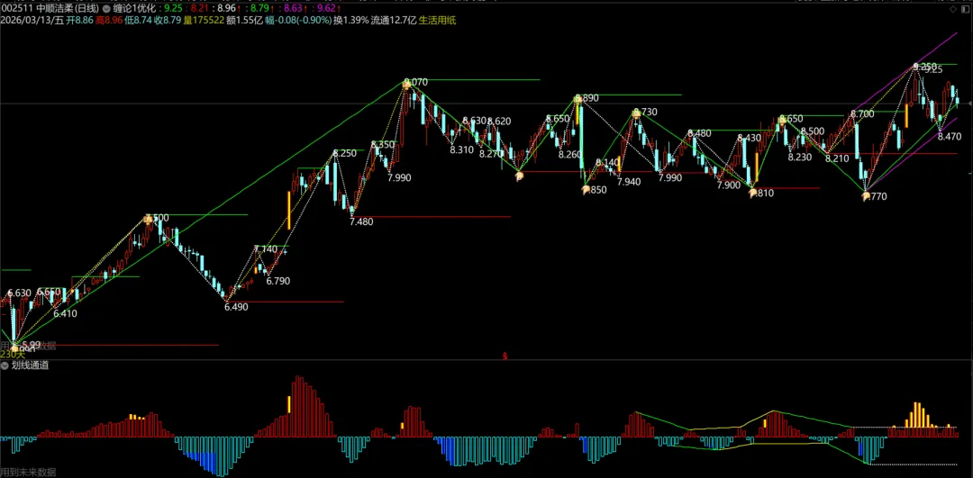 IF(YIX25>REF(YIX25,1) AND YIX25<YIX20,YIX25,DRAWNULL),COLORFF00FF,LINETHICK4;