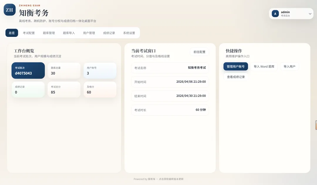 我没把它当成一套只负责“在线答题”的工具来做。我更想做的是一套能接住实际场景的考务软件,尤其是内网、离线、多平台部署和现场组织这几类情况。