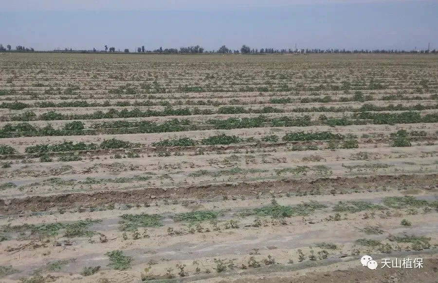 最近到农资店里检查,发现大量的扑草净在售卖,从市场来看,这种农药在农户那里有一定的市场,所以近期也接到农户或经销商的一些电话咨询和天山植保平台留言,多在询问使用技术。其实天山植保多次强调了这种农药的药害问题,这里就一些技术和近几年的田间表现给大家再次说明。扑草净由于价格便宜和除草效果较好,南疆棉田使用较为普遍。从近两年南疆棉田试验观察来看,南疆棉田应用扑草净对棉田双子叶防草效果好于北疆棉田,南疆棉田防除龙葵(野辣子)效果不如龙草净,但防效在60-70%,还是较为稳定的防效。那么就让我们共同了解一下扑草净使用技术吧。
