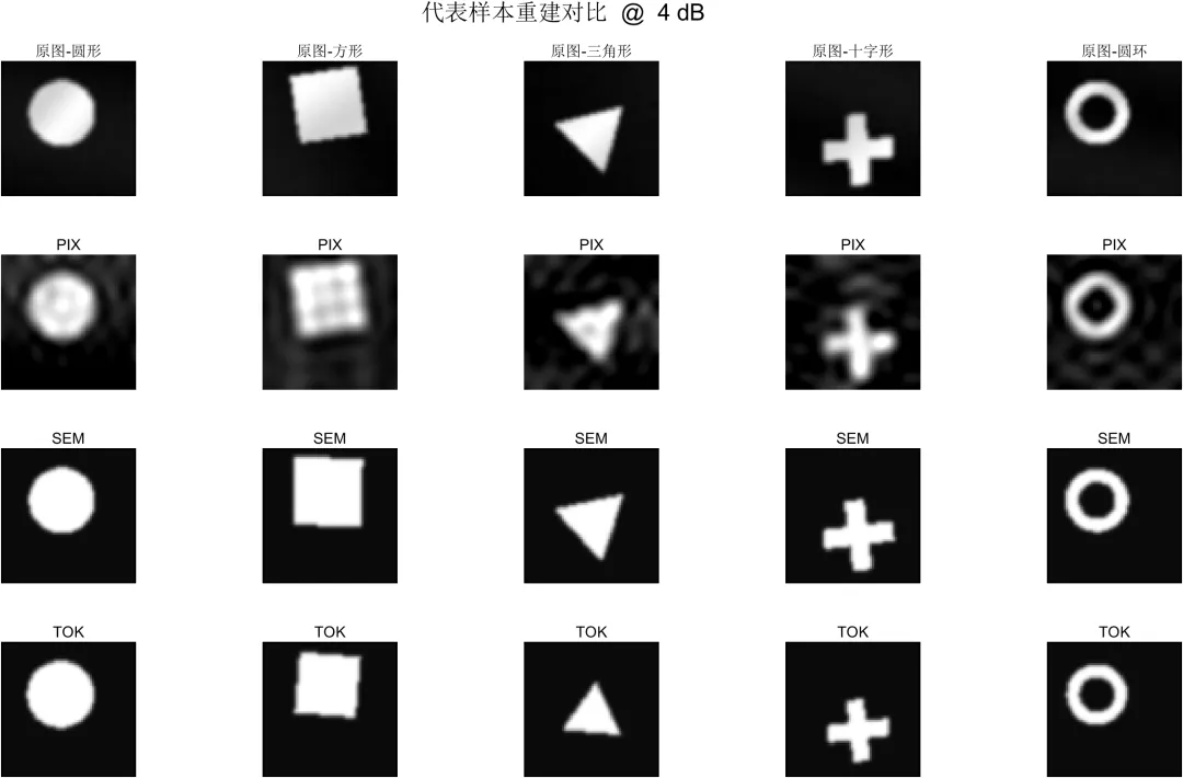 在重建策略方面,本文并不把语义链路与令牌链路的输出解释为传统意义上的自然图像重建,而是将其视为“结构性恢复”。也就是说,接收端根据恢复到的语义表示重构出具有主要轮廓、几何关系和拓扑属性的任务图像,用于后续分类和结构评价。这一思路符合任务驱动通信的本质:如果系统目标是正确识别与稳定决策,那么恢复对象是否拥有与原图完全一致的像素纹理并非唯一重点,结构与语义的保持才是更关键的问题。