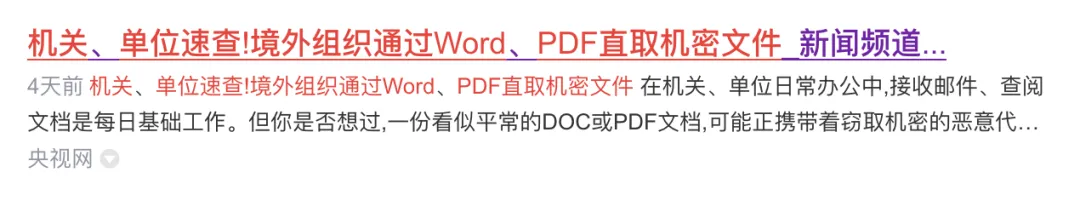 央视曝光的Word、PDF窃密事件,给所有政企单位敲响了网络安全警钟——网络攻击无孔不入,任何一个细节的疏忽,都可能导致国家秘密、工作秘密全盘失守。