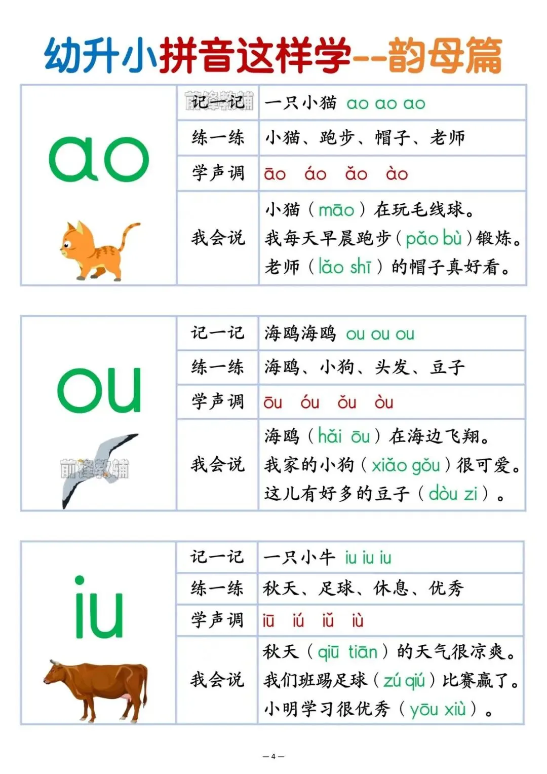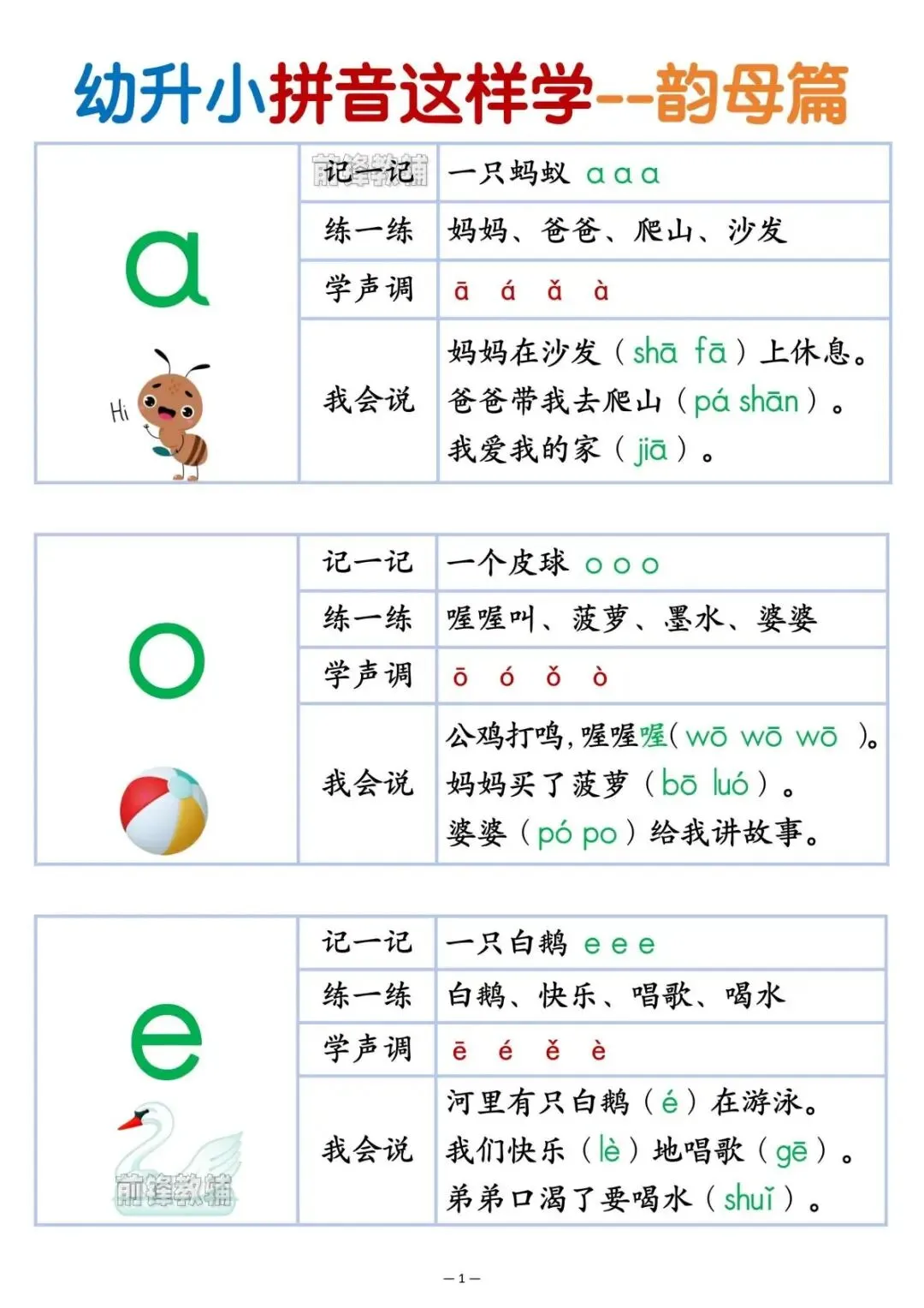 幼升小拼音这样学,电子版可打印,包含韵母篇,声母篇,整体认读音节篇