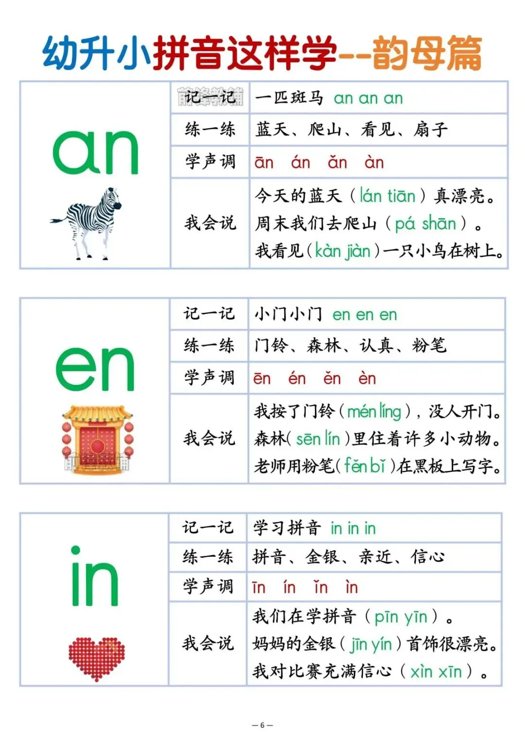 幼升小拼音这样学,电子版可打印,包含韵母篇,声母篇,整体认读音节篇、拼音儿歌、声调、拼读等内容,帮助孩子攻克拼音难关有这一份资料就够啦,需要的家长们给孩子领取一份,读一读,背一背吧。