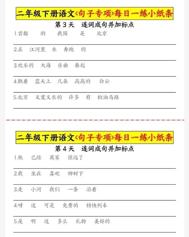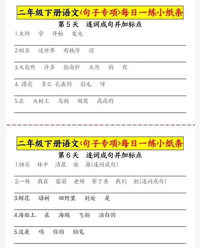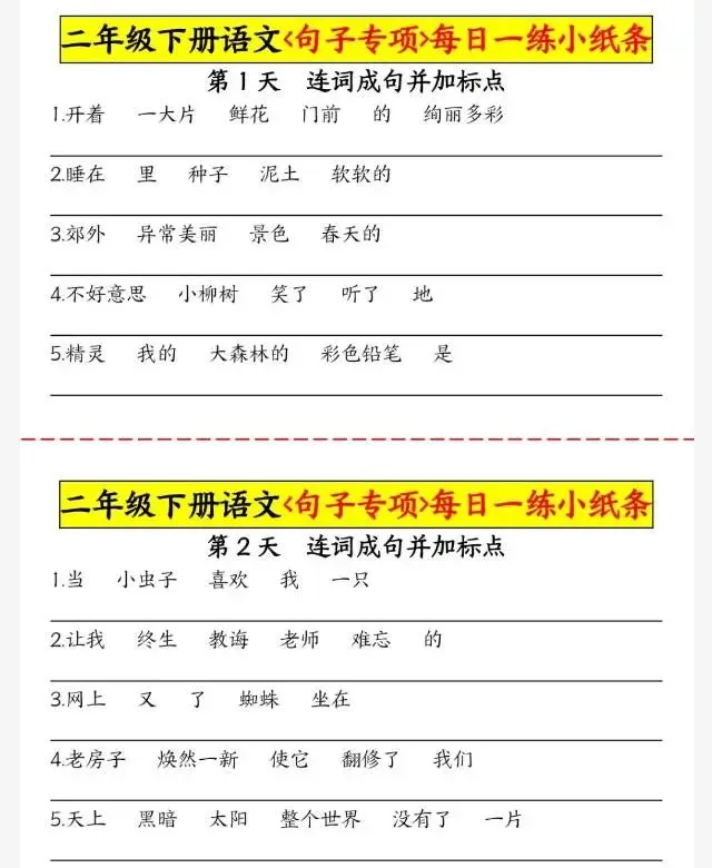 二(下)语文+句子专项每日一练小纸条.pdf