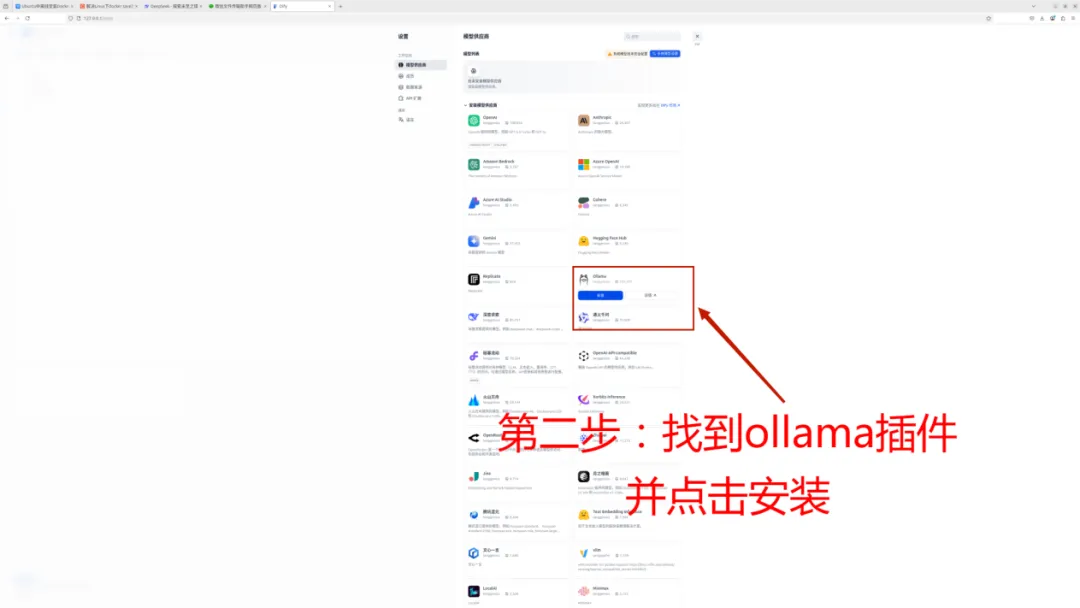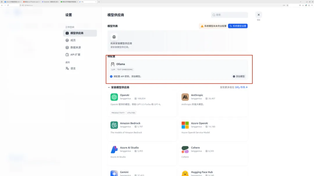 安装成功后,在待配置项中就会显示ollama插件,最终效果如下图所示