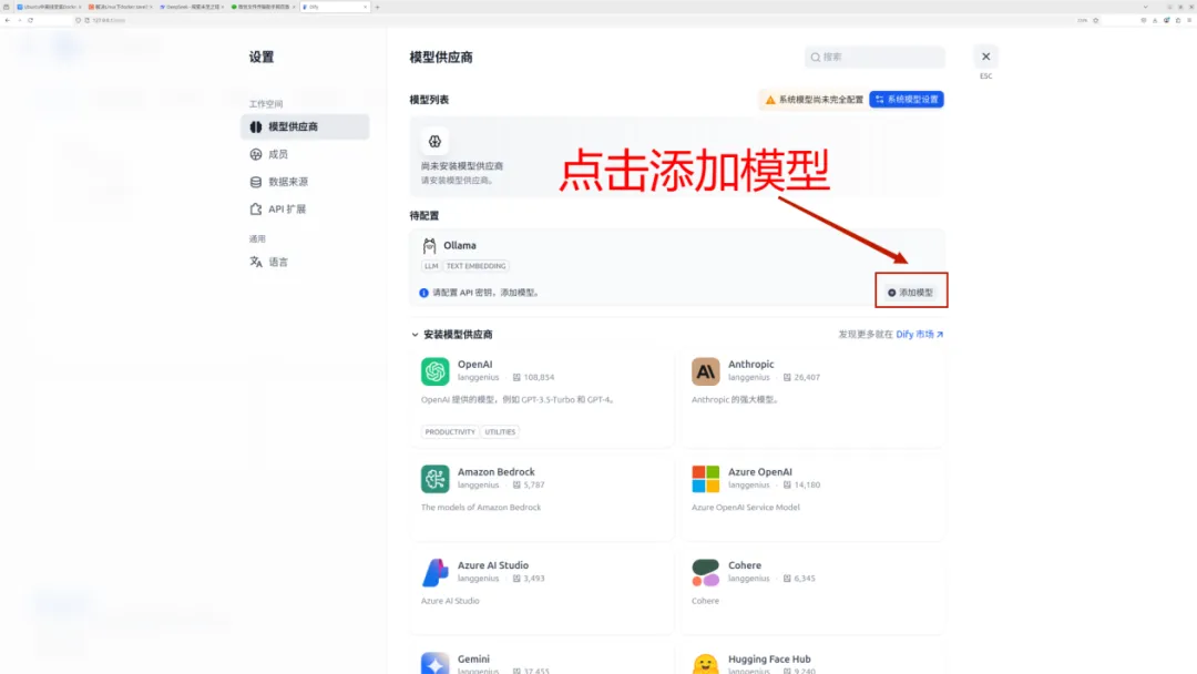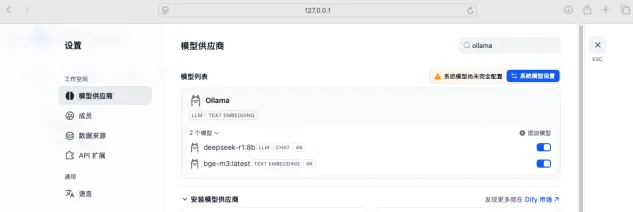(1)设置-模型供应商-ollama-安装-添加模型,使dify能够给调用本地部署的大模型