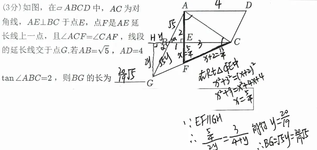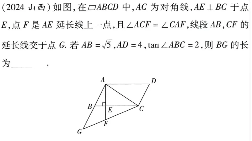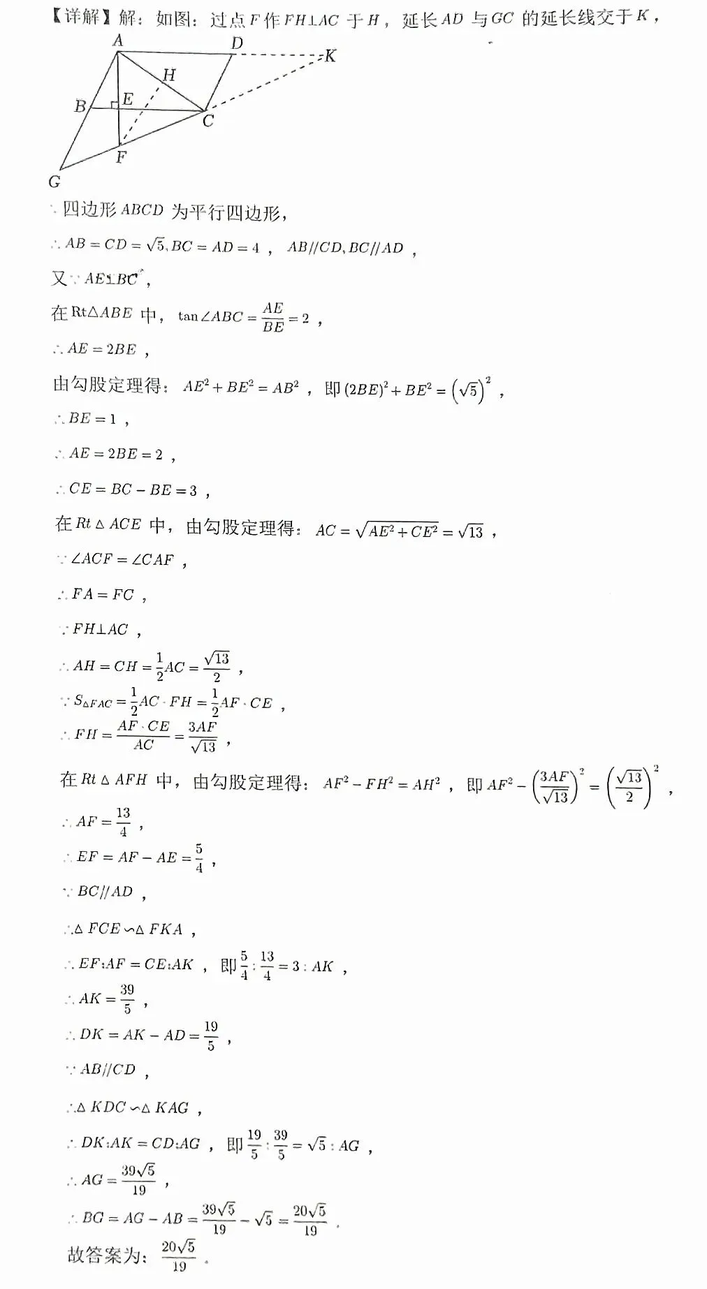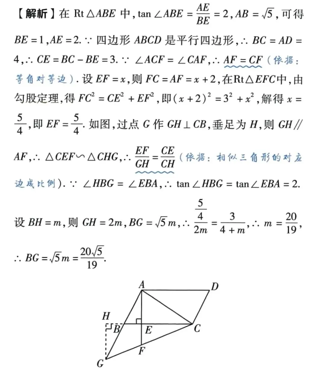 这道题围绕“BG”展开,先确定平行四边形的边长与高,再结合等腰三角形、相似三角形的性质计算: