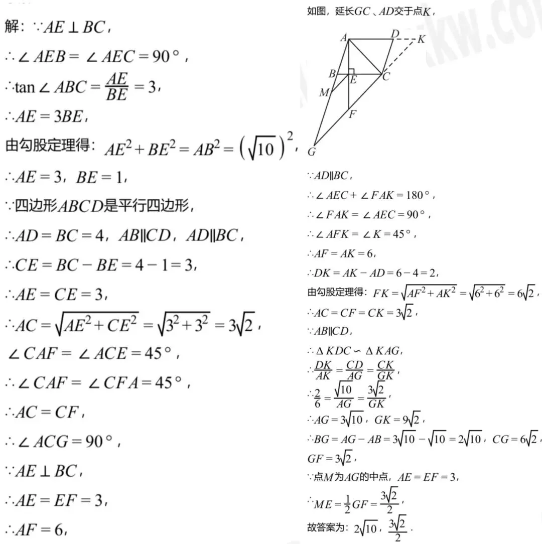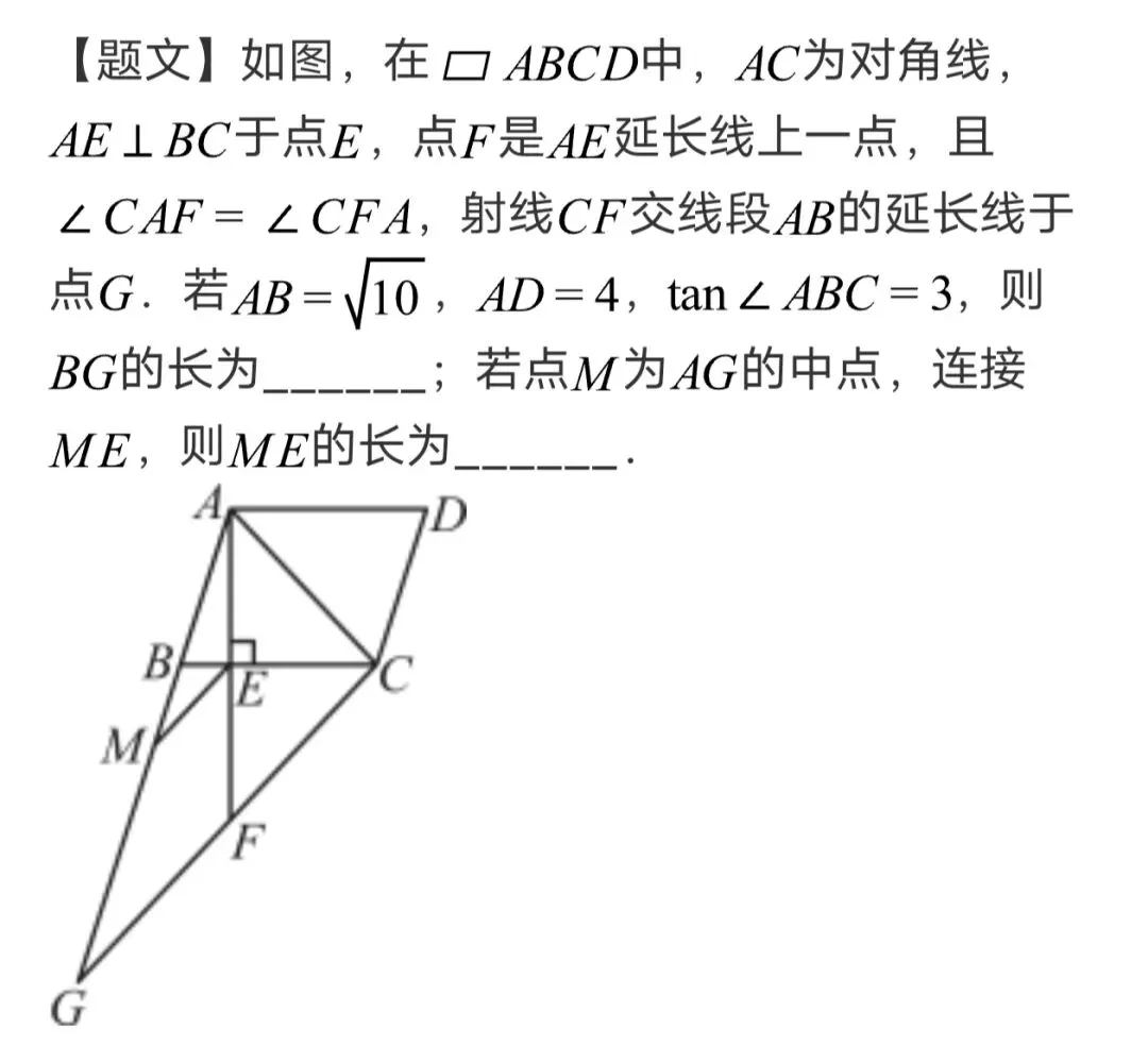 今天分享这道平行四边形中的线段长度题——它的核心是先通过三角函数求基础线段长,再利用等腰三角形和相似三角形的性质,推导目标线段的长度,解题步骤层层递进: