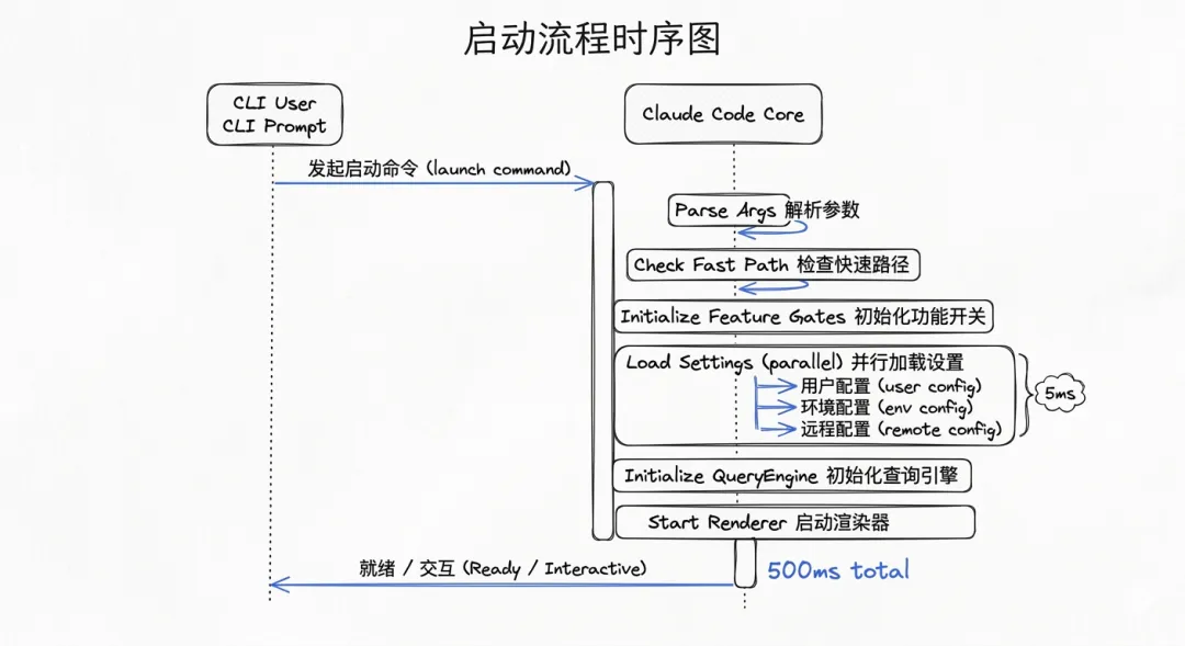 // 并行预取const [tokens, settings, mcpServers] = await Promise.all([ loadOAuthTokens(), loadSettings(), discoverMcpServers(),])// 初始化QueryEngineconst engine = new QueryEngine({ tokens, settings, mcpServers, features,})// 启动渲染管线startRenderer(engine)