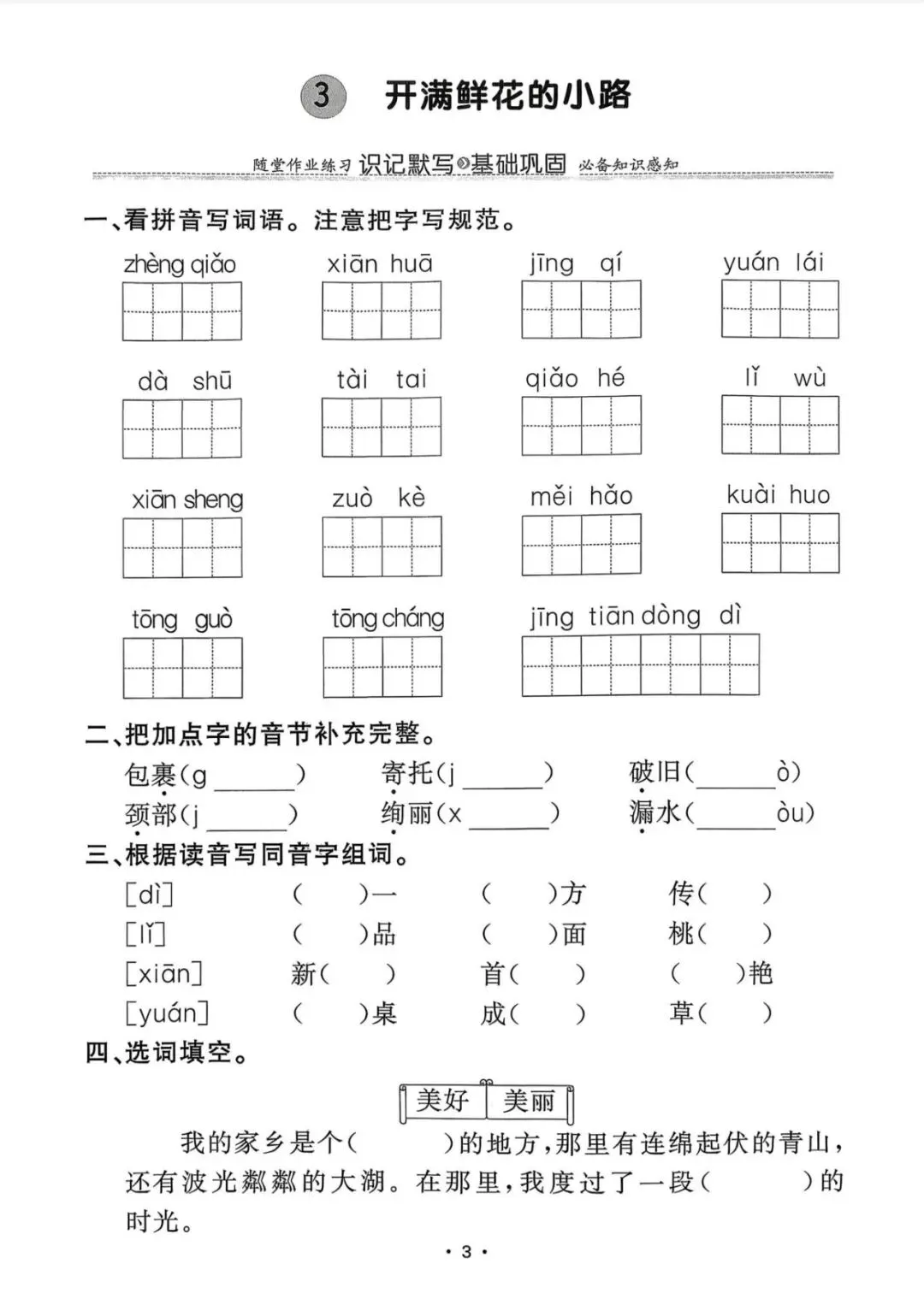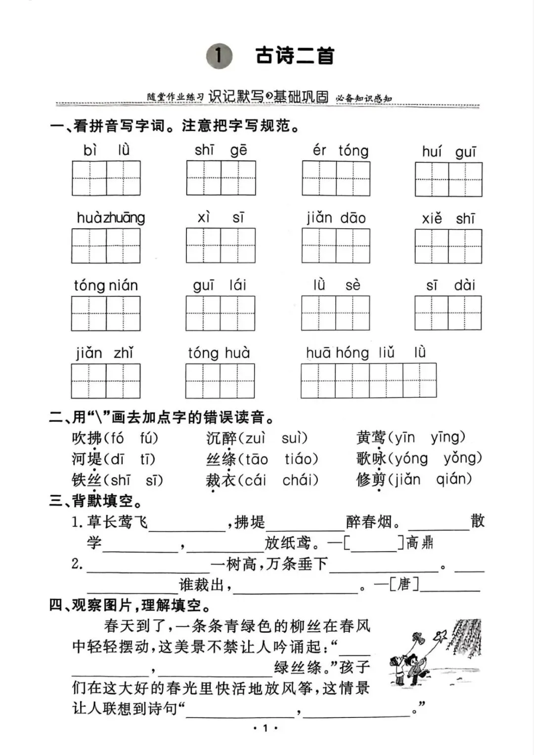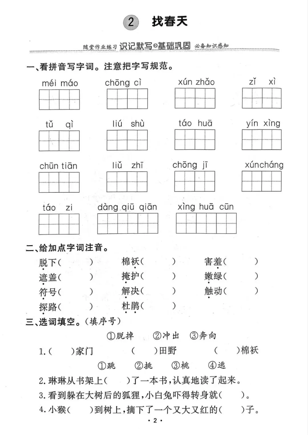 新版二年级下册语文课堂随时练,包含拼音字词、填空理解等内容,需要的家长抓紧打印出来,给孩子练一练吧!