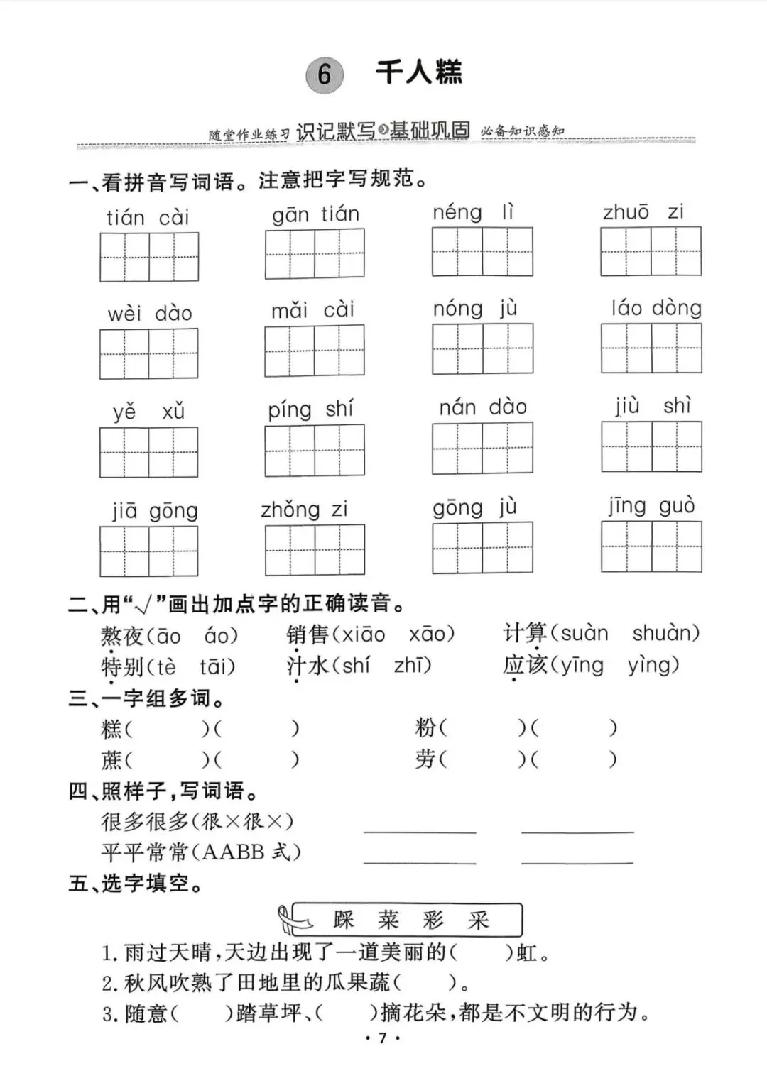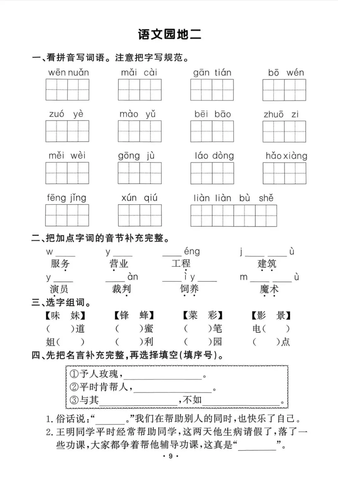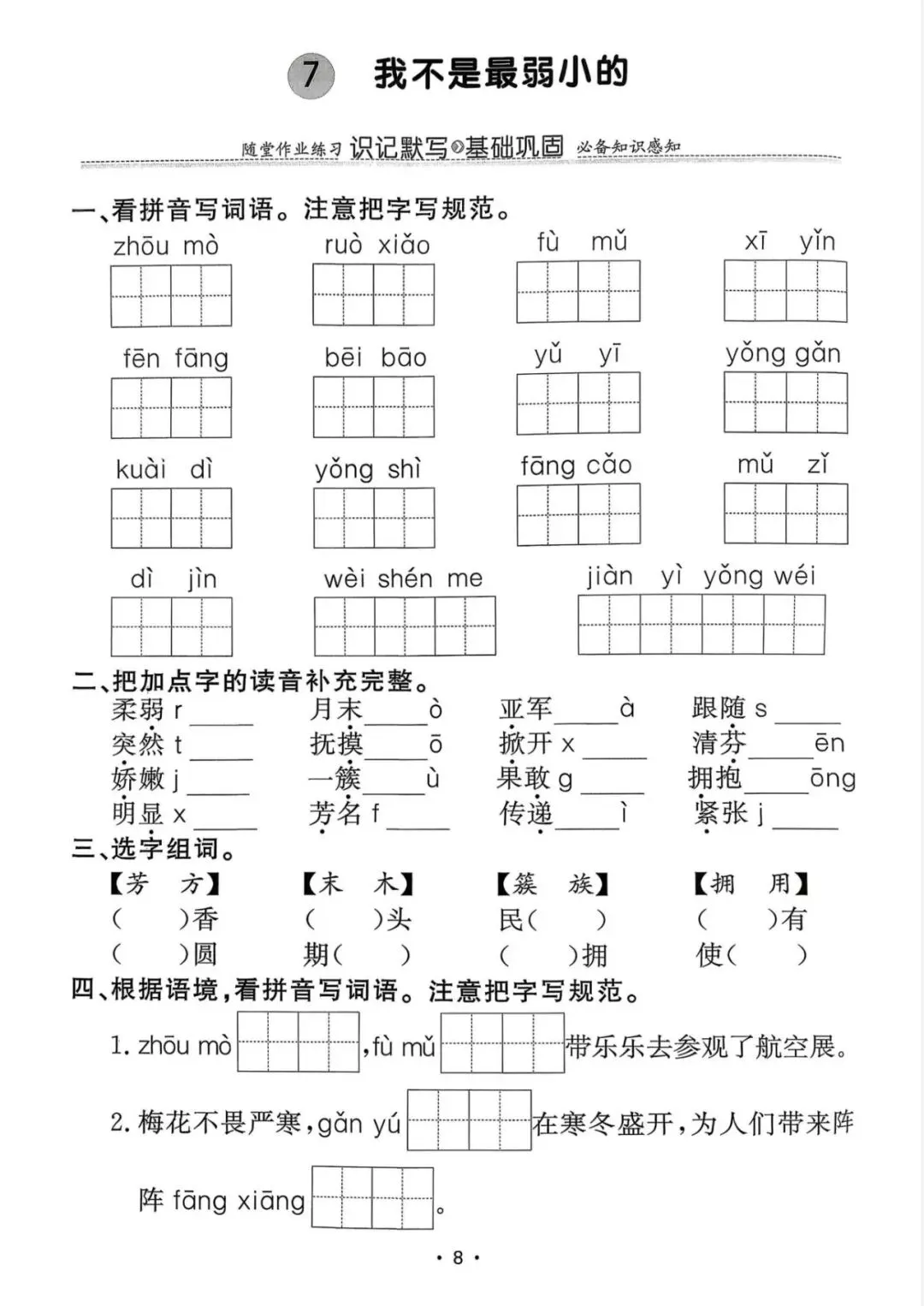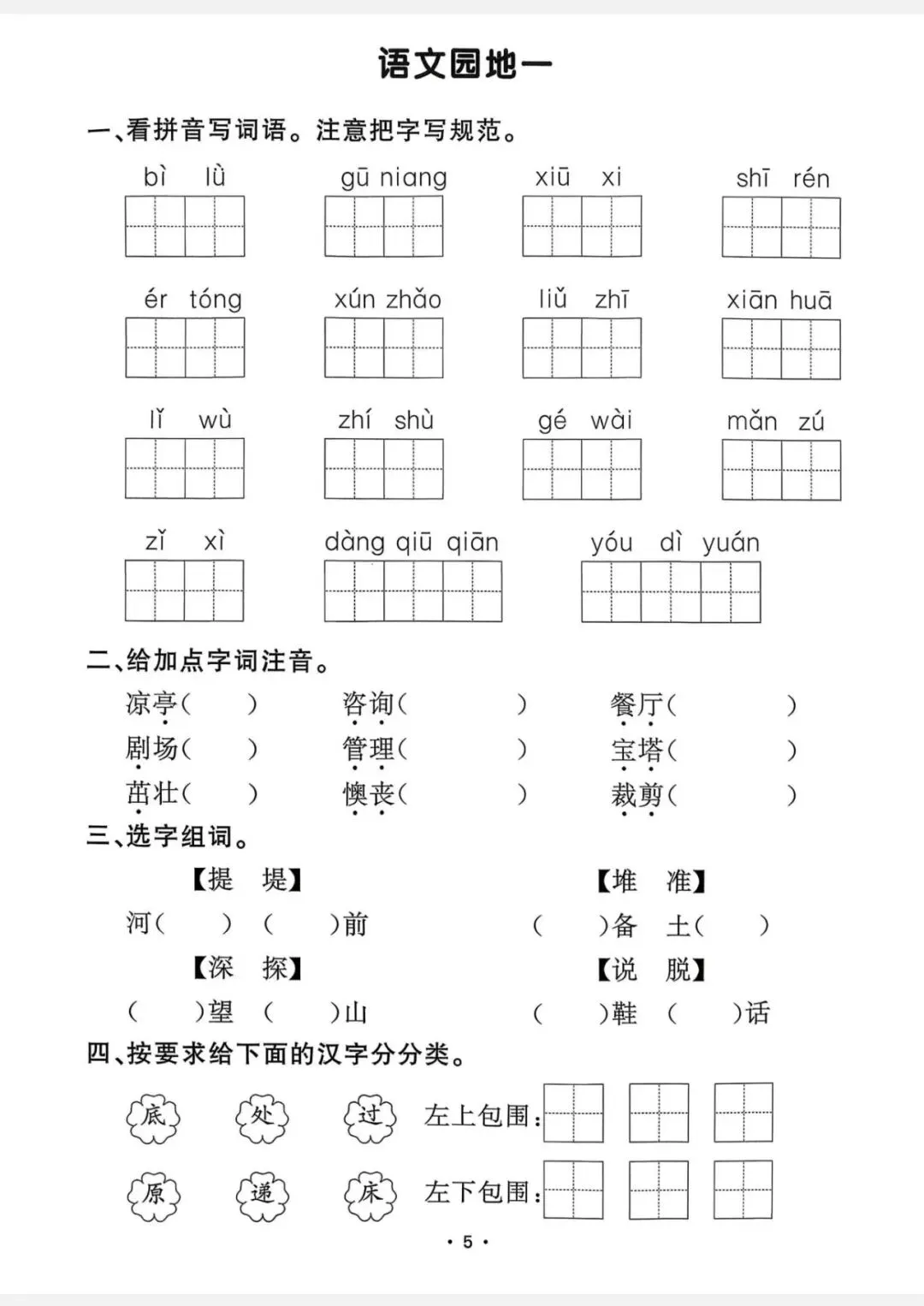 新版二年级下册语文课堂随时练,包含拼音字词、填空理解等内容,需要的家长抓紧打印出来,给孩子练一练吧!