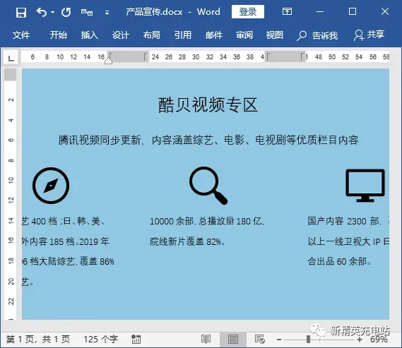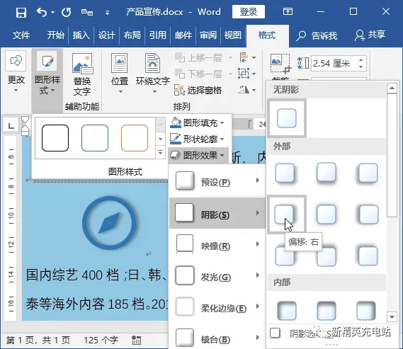 例如,对“产品宣传 .docx”文档中图标的颜色和阴影效果进行设置,具体操作步骤如下。