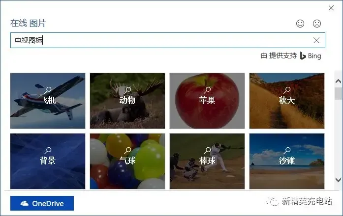 Step 02 输入关键字搜索。打开【在线图片】对话框,在搜索框中输入需要的图标关键字,如输入【电视图标】,如下图所示。