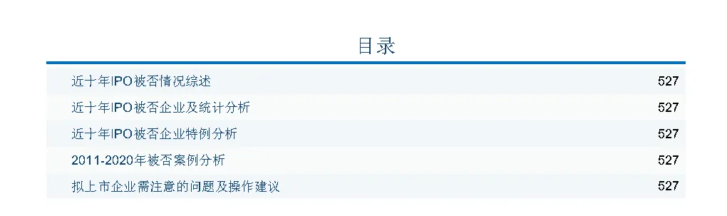 包含:近十年IPO被否情况综述;近十年IPO被否企业及统计分析;近十年IPO被否企业特例分析;2011-2020年被否案例分析;拟上市企业需注意的问题及操作建议