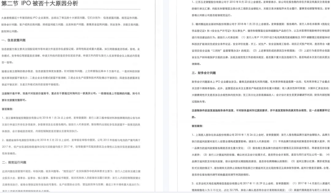 本期精选十年IPO被否案例解读手册