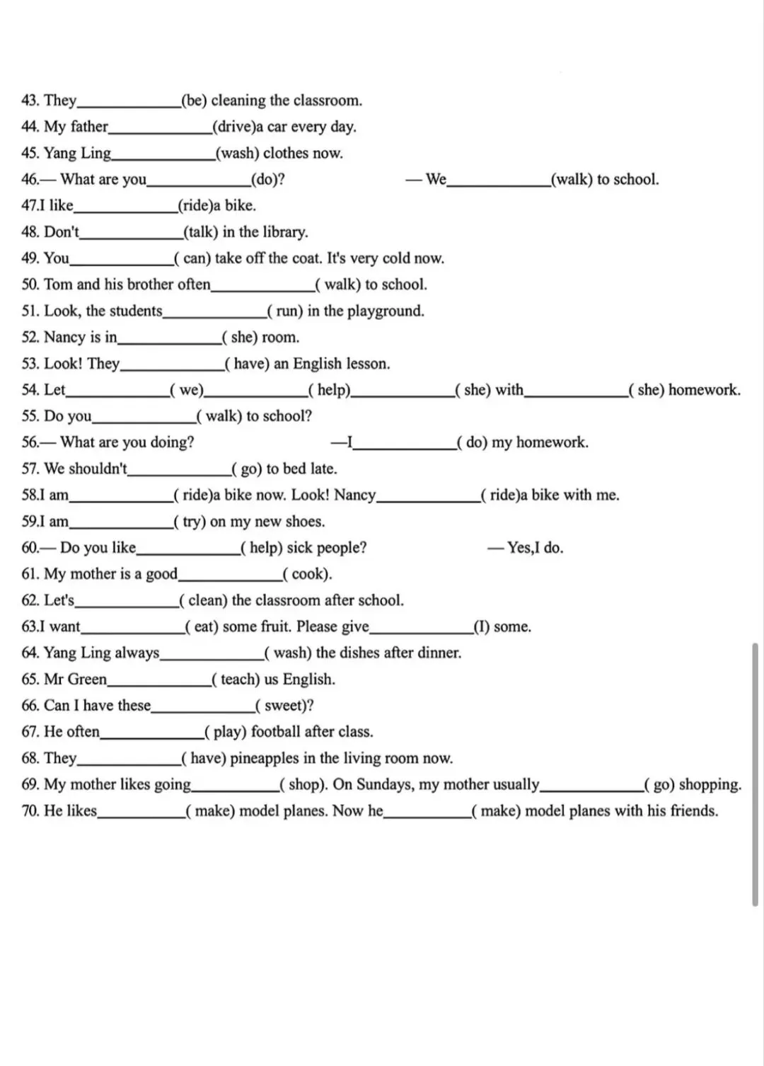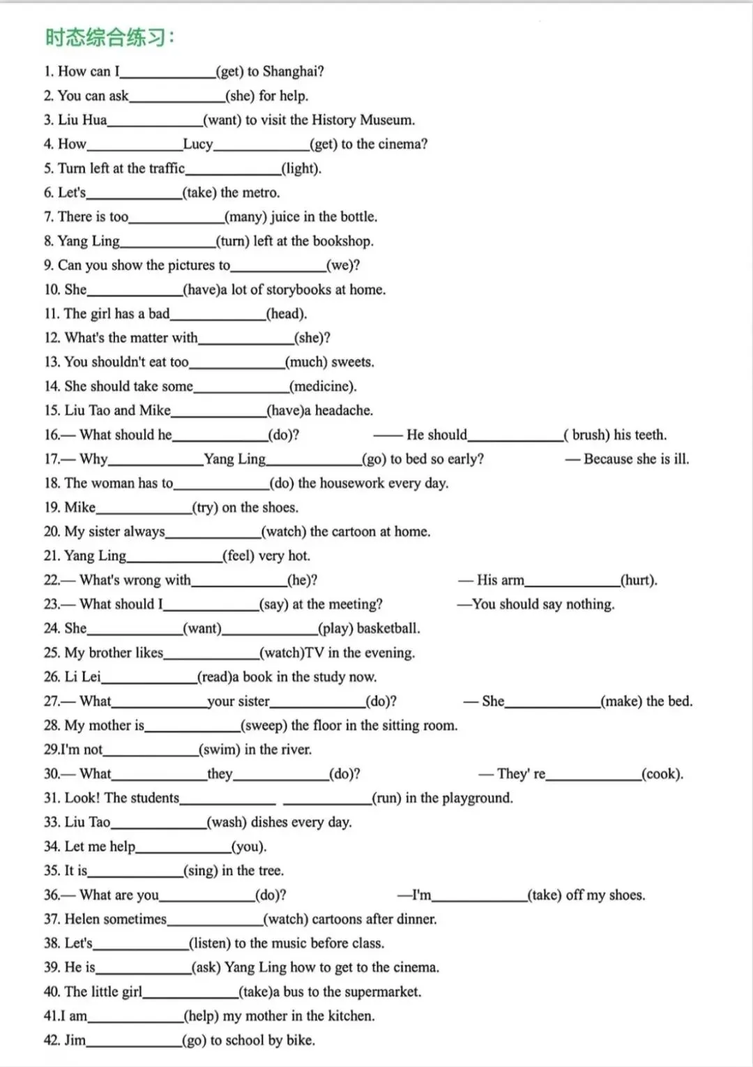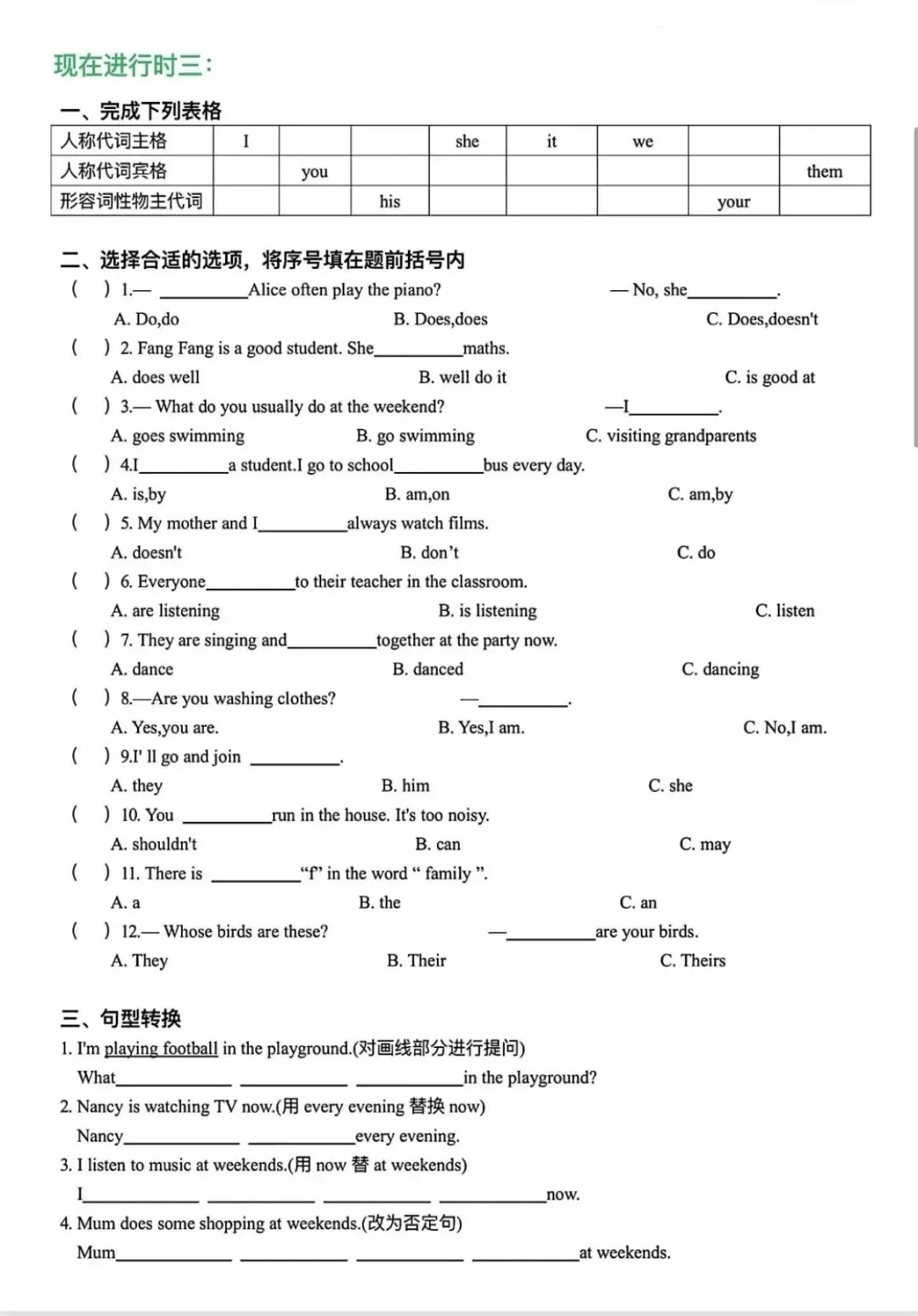 【习题】可打印| 五年级下册英语常考现在进行时+时态综合练习