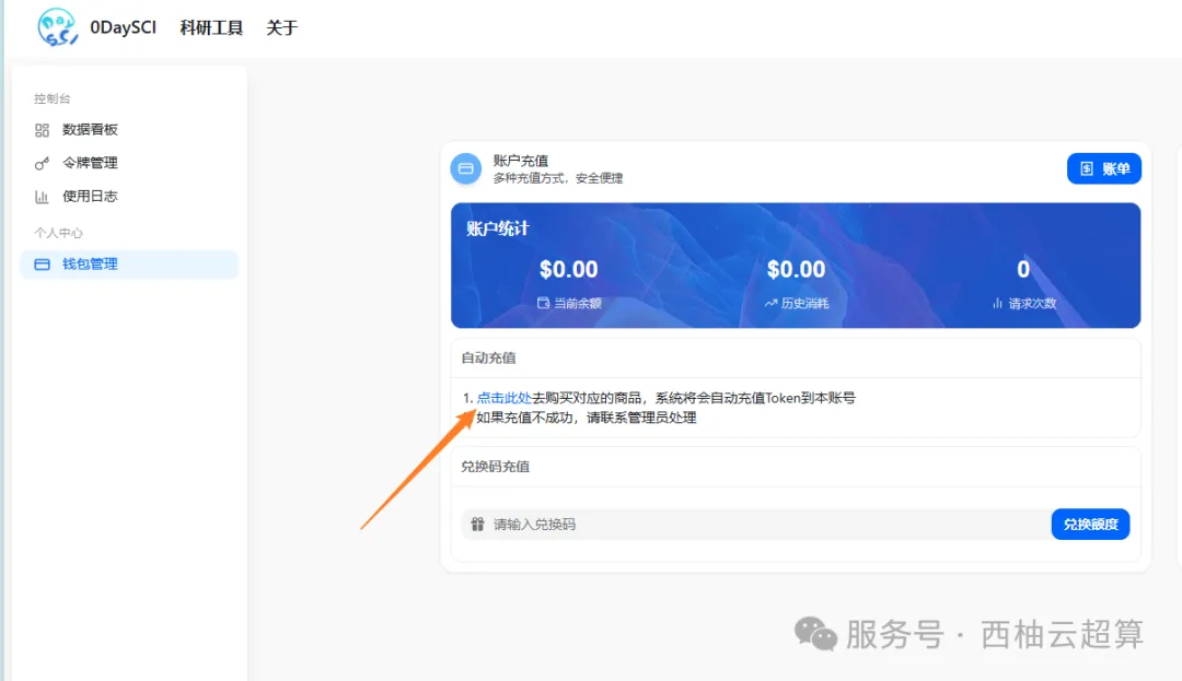 点击跳转购买对应的商品,购买后系统将自动充值Token。
