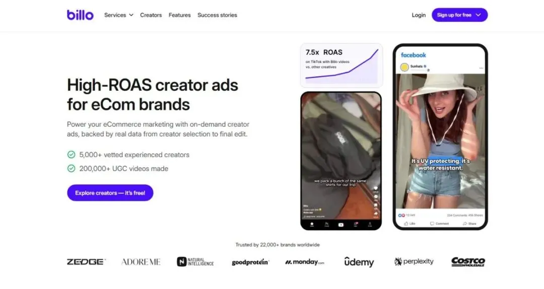 无需手动筛选、写脚本或修改,产出视频可直接用于YouTube Shorts、Meta广告、TikTok和Shopify商品页的广告 UGC。这个平台不使用AI数字人,专注经数据验证的真实创作者。