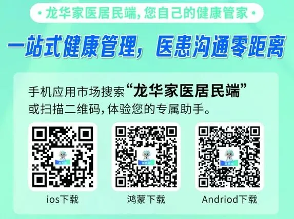 健康无小事,便捷不等待!赶紧拿起手机下载「龙华家医」APP,让家庭医生在线守护你的健康,解锁智慧健康生活新方式~