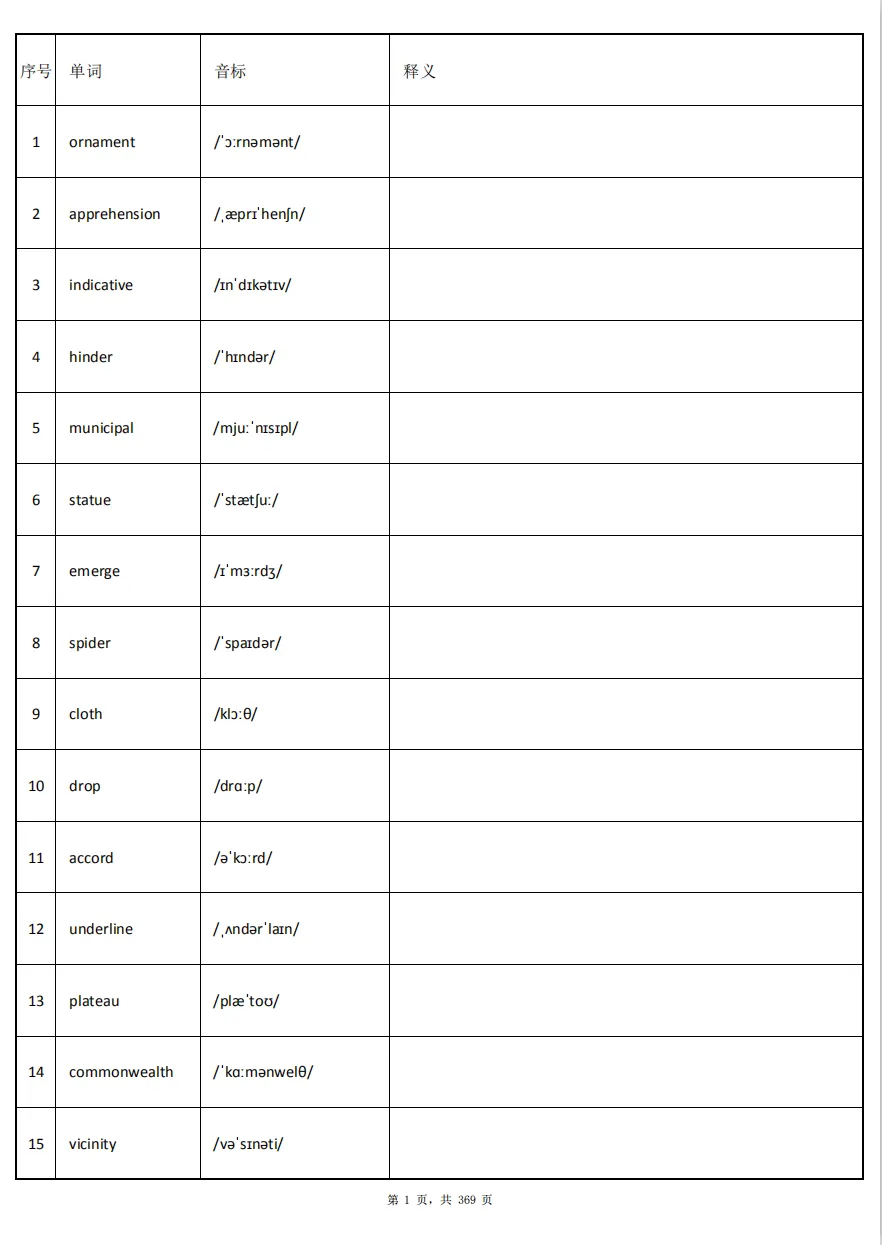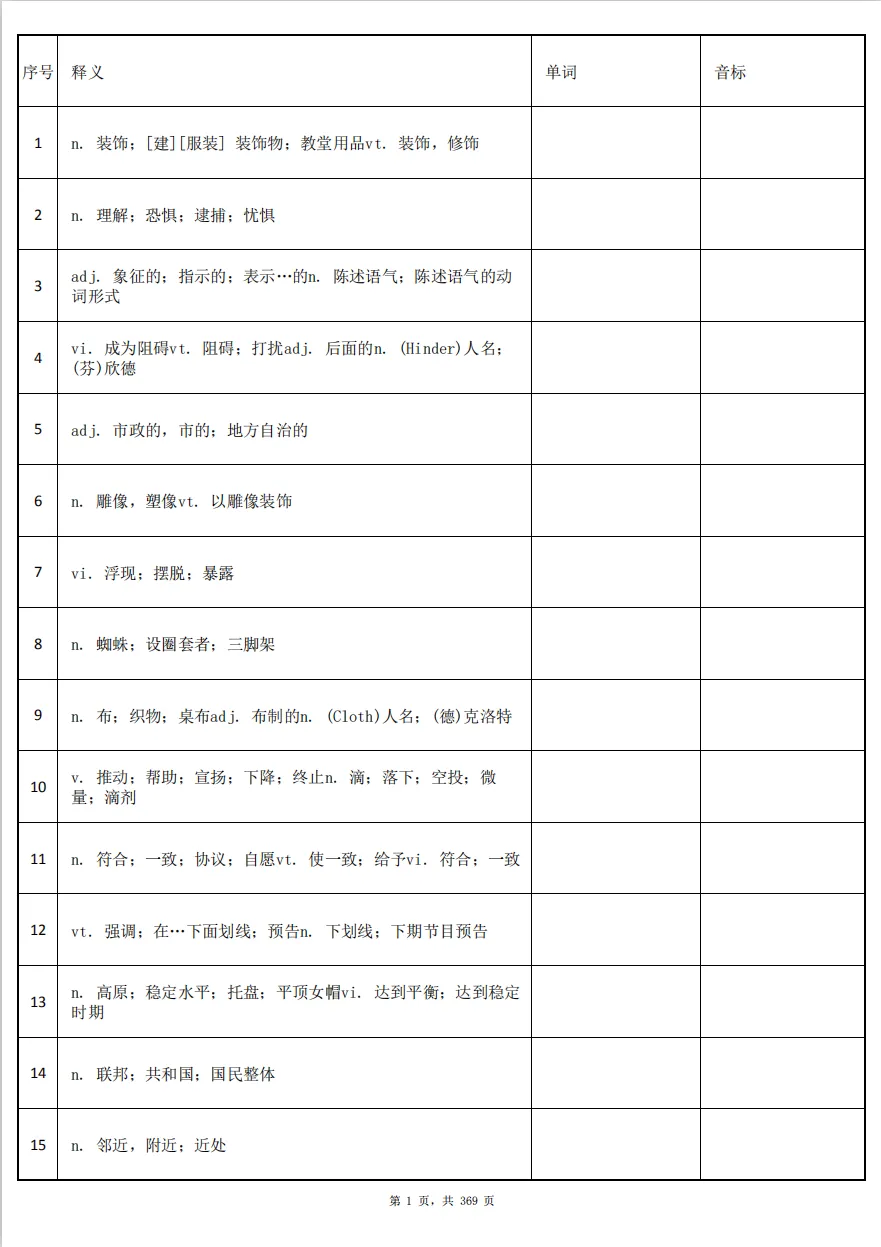 英语六级考试大纲词汇表5500个PDF电子版(含正序版、乱序版和默写版)