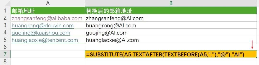 在实际应用中,TEXTBEFORE函数可以用于提取各种特定信息,如从电子邮件地址中提取用户名、从网址中提取域名等。例如,假设A1单元格中包含电子邮件地址”example@example.com”,使用TEXTBEFORE函数提取用户名的公式为:=TEXTBEFORE(A1, “@”)。这将返回字符串”example”,即电子邮件地址中的用户名部分。
