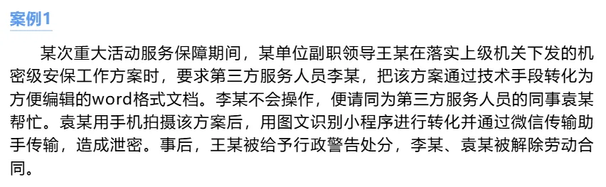 单位领导王某下发工作方案时要求转为word文档,第三方人员用图文识别功能传输造成泄密