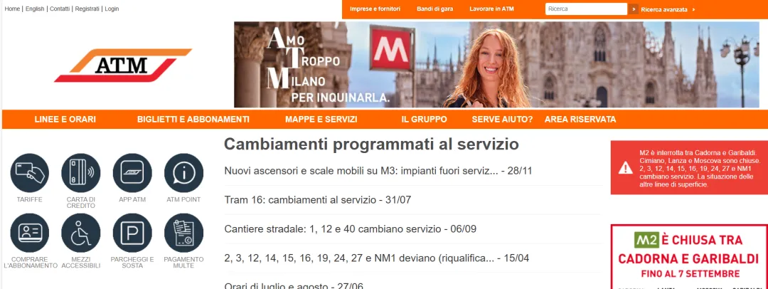 ATM Milano仅适用于米兰大区交通