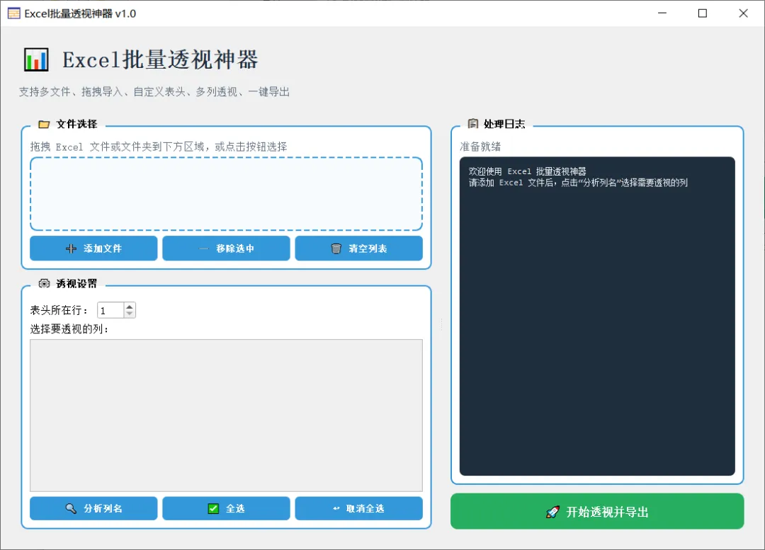 • 智能识别列名:拖入文件后,点击【🔍 分析列名】,它会自动读取表格所有的列名供你勾选。 -
