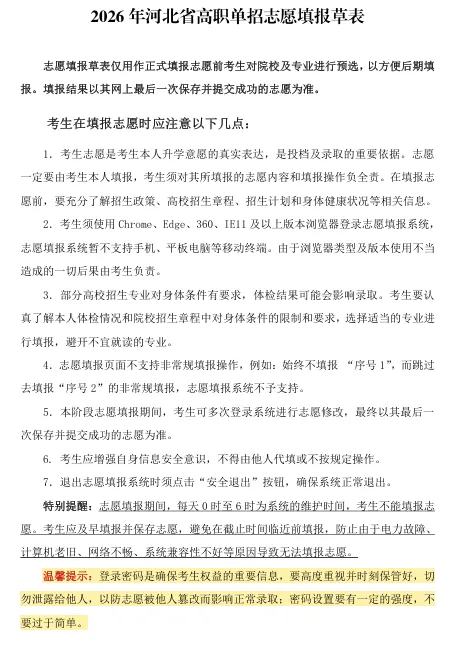 转发!2026年河北省高职单招网上操作说明及志愿表格