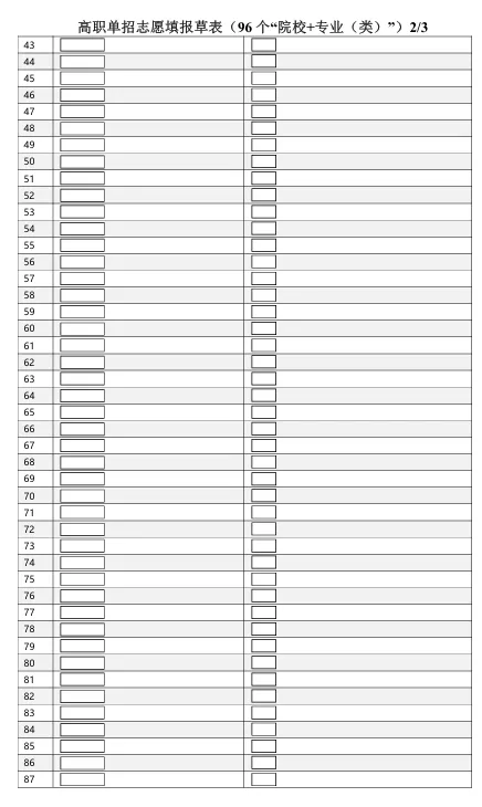 注意:保存志愿时,所填志愿序号必须连续,中间不能留空,否则系统无法保存。例如未填序号1(第一行)的院校及专业,而跳过去直接填了序号2(第二行)的院校及专业,志愿填报系统不予支持。