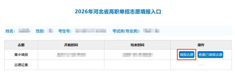 考生首次进行志愿填报须仔细阅读“2026年河北省高职单招志愿填报承诺书”,点击“我承诺”进入志愿填报入口页面。
