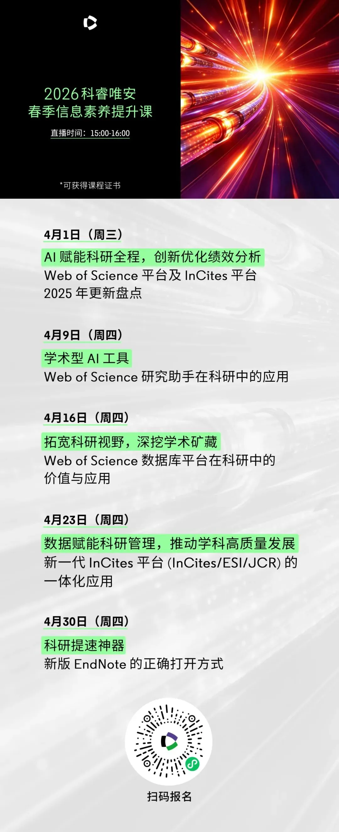 开播提醒——点击订阅“开播提醒”,并关注【科睿唯安学术研究】微信公众号