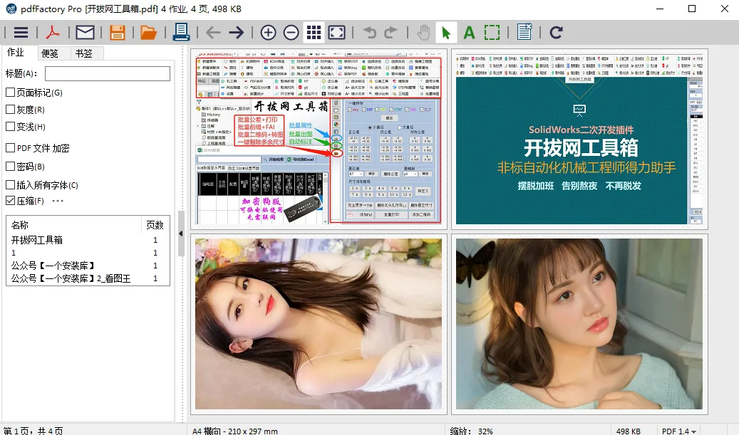 • 预览:允许改变加密,内嵌字体,链接处理和书签而无需重新打印原始文档。