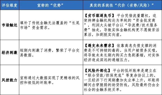 国家之所以对传统银行实施极度严苛的监管(资本充足率、存款准备金等),是因为“信用创造”本质上是国家主权的延伸。如今,互联网巨头虽然不直接吸储,但它们通过“超级入口 + 算法风控 + 机构资金通道(助贷)”的模式,实质上垄断了海量下沉市场的“信用分配权”。它们成了无需承担系统性兜底风险的“影子央行”,这是对国家金融主权的隐性僭越。