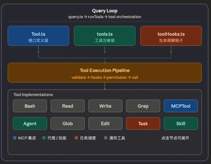 Claude Code 的工具系统采用插件化架构,由以下核心模块组成