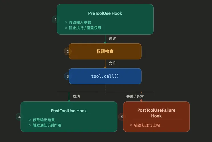 Hook 生态: Pre/Post 执行钩子提供完整的扩展点