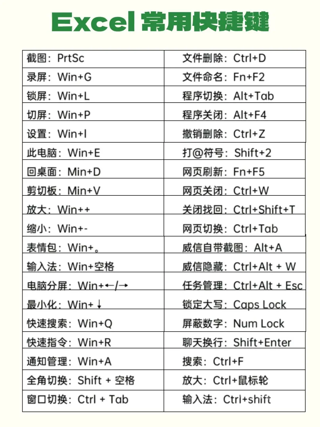 我整理了这篇新手必看的Excel快捷键合集你一定要看❗️掌握这些实用快捷键,让你轻松搞定各类表格,办公更高效✔️
