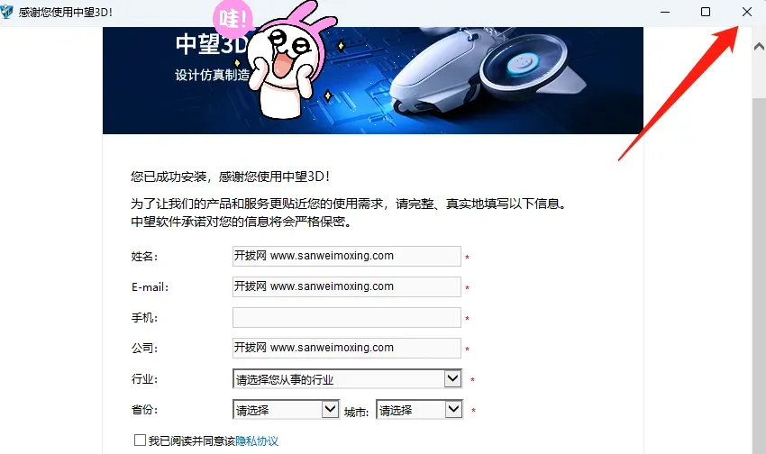6、不用理会弹出的填写个人信息表单,右上角,点X关闭